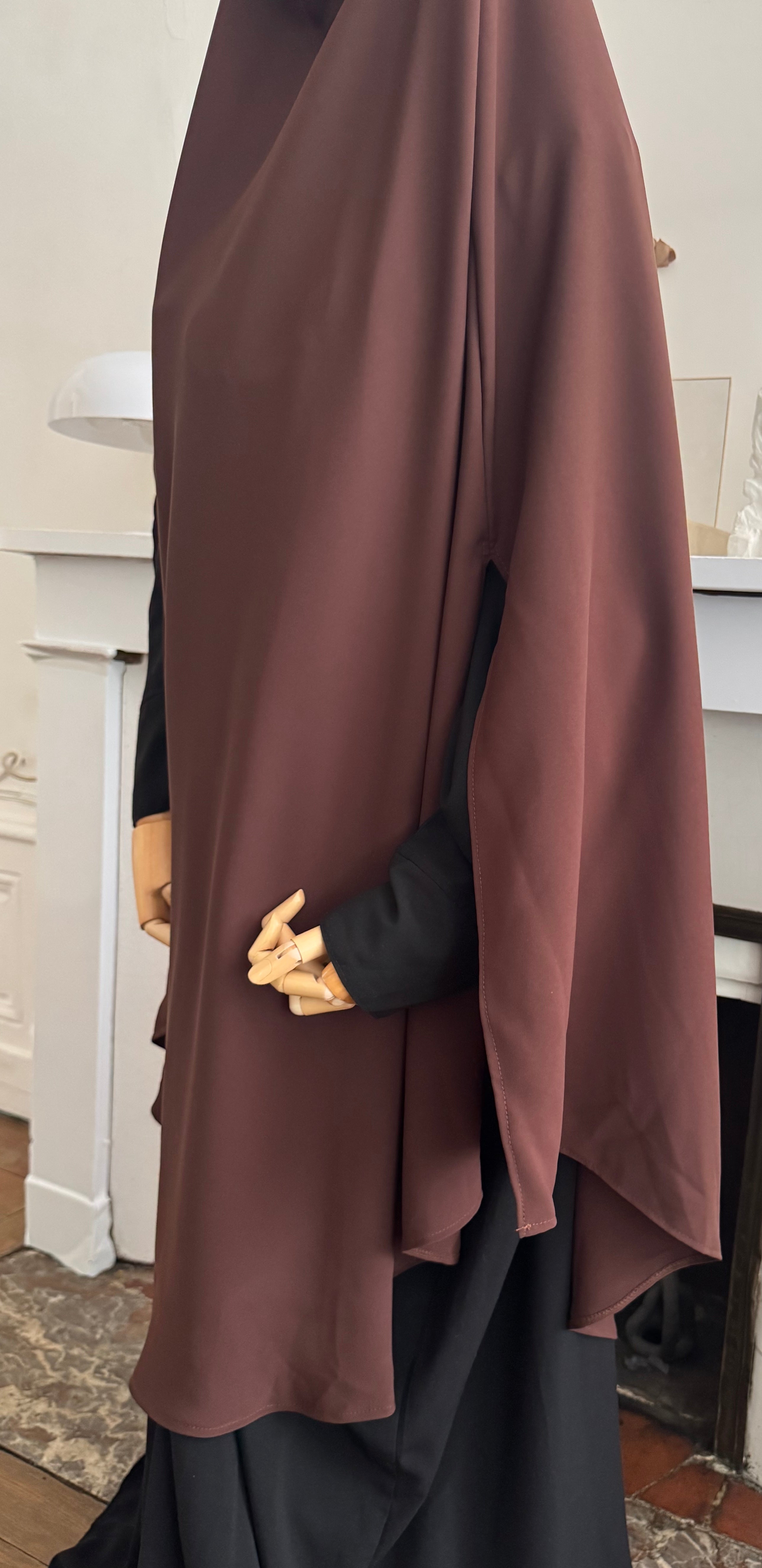 Découvrez le khimar à fentes en satin intégré et sa version sans satin :